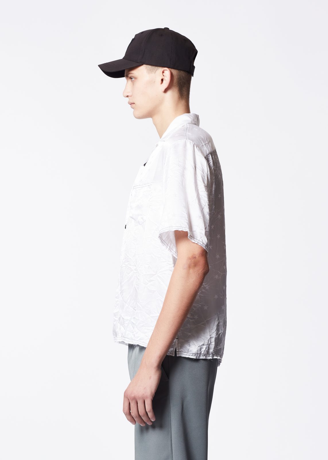 It is made in a light weight crinkled shiny star jacquard fabric.