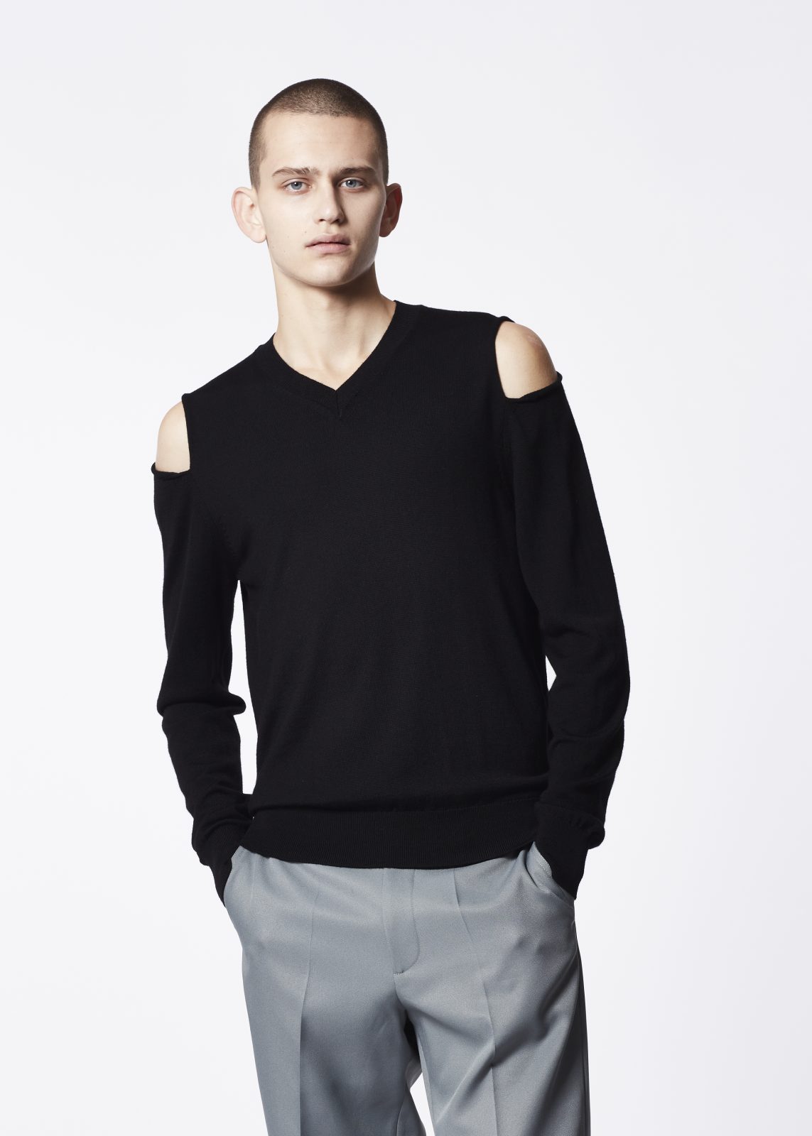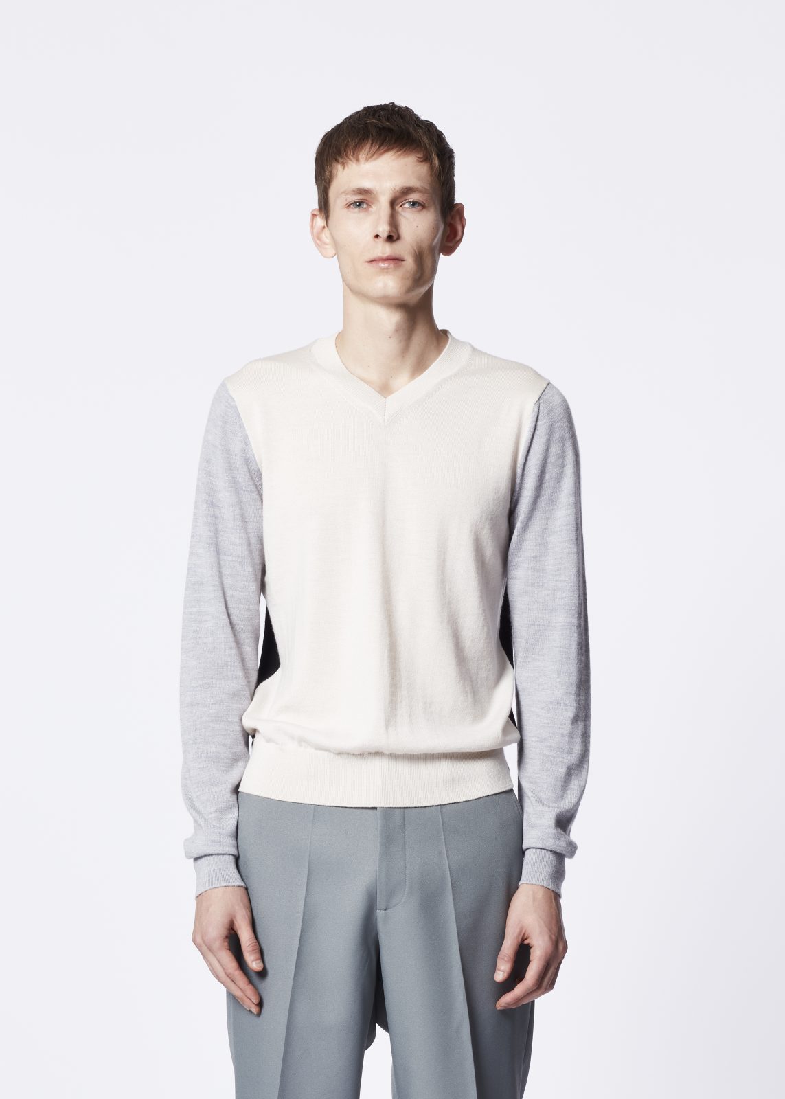 We took a classic fit V-neck sweater